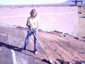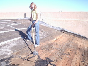 Carol took a week off from work to devote herself to helping remove the existing roofing material.