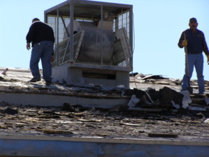 This is a big building and there is a lot of old roofing material that still must be removed.