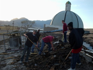 The Youth Group from Colonial Christian Academy, directed by Dr. Barbara Krell, from Columbia, South Carolina, have driven to Miracle Valley, Arizona, some 2,000 miles to help Dr. Harter remove the existing roofing material from the tabernacle.